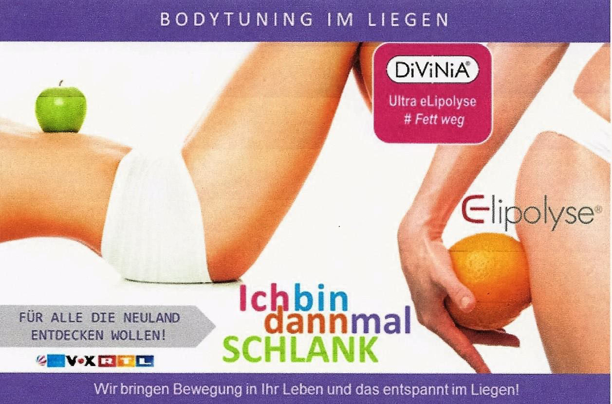 Das neue Divinia-Ultra-System ermöglicht gezieltes Bodyforming und kann hartnäckige Fettpolster gezielt bekämpfen. Und das sichtbar und dauerhaft. Der tiefgehende Ultraschall und die feine Strom-Impulsgebung von DiViNiA® stimulieren den Fettstoffwechsel und beschleunigen die Freisetzung der Fettsäuren. Fettzellen werden voneinander gelöst und schnell und effektiv reduziert. Diese Körperstimulation geht bis in die tiefsten Gewebeschichten und erreicht durch die starken Kontraktionen jeden Muskel in vierzig Mal wechselnden Trainingseinheiten. Und dies bei 80 % Aktionspotenzial der Muskulatur. Im Vergleich hierzu liegt Fitnesstraining bei ca. 30 – 40 % Aktionspotenzial. Ebenso können neue Muskelfasern gebildet werden.